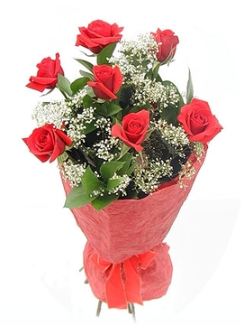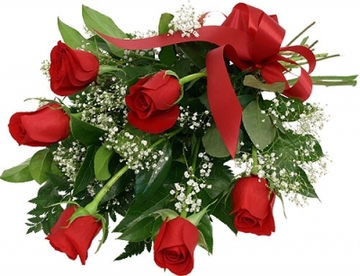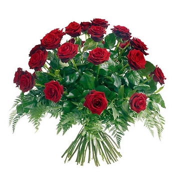 Fallegar Rauðar Rósir m/grænu og hvítu. ( Kort er innifalið í verði )